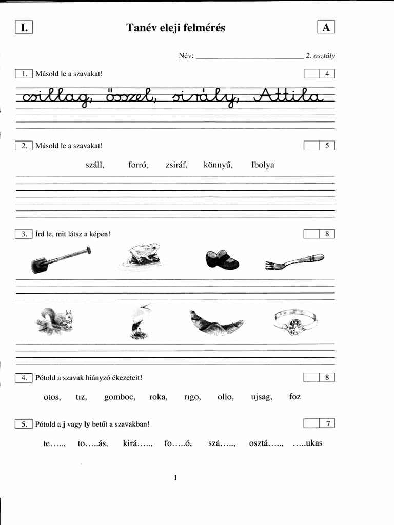 Iras Helyesiras Felmero Feladatlapok 1 Osztaly Tanitoikincseim Lapunk Hu