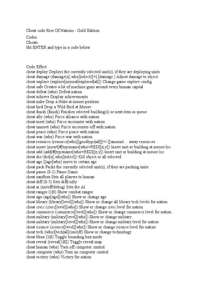 Rise Of Nations Extended Edition Pc Cheat Codes Guide
